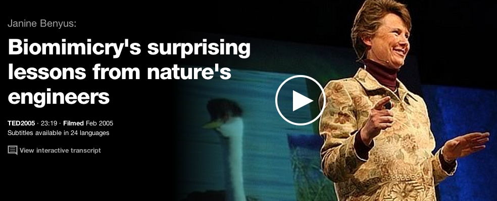 If you love design, the environment and effective products this woman and the work she is doing is pure inspiration. Janine Benyus provides heartening examples of ways in which nature is already influencing the products and systems we build. A thoughtful voice of science that gives us another reason to value nature.